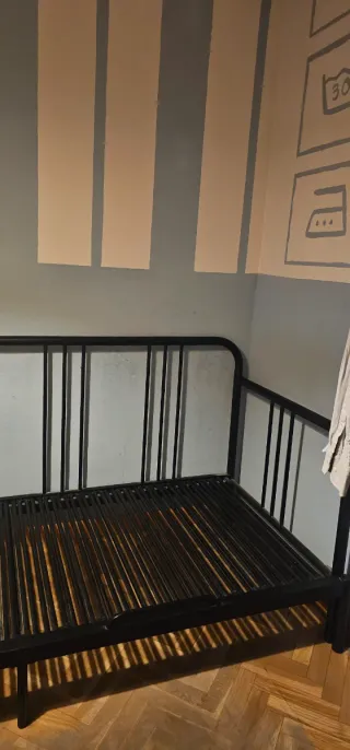 Diván cama de Ikea, un modelo ya descatalogado. Su estructura es metálica y cuenta con dos colchones. - Diseño moderno y funcional. - Color negro
