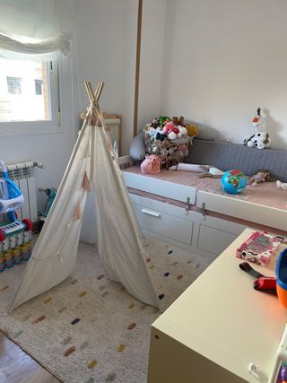 Ya desmontado sólo llegar y cargar. Si lo necesitas no lo dudes!. Lo tengo en Almerimar (El Ejido). En buen estado. Incluye los 2 colchones de 80cm. En la última foto están las medidas. Nuevo sólo la estructura cuesta 399€ y yo incluyo colchones!