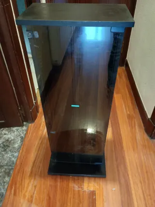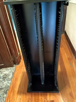 Mueble de diseño moderno, ideal para almacenar tus CDs. - Estructura principal de madera. - Paneles frontales de cristal. - Base y tapa en acabado negro. En muy buen estado ,está en perfectas condiciones ,en cada fila trae para colocar 50 cds en cada una de las filas