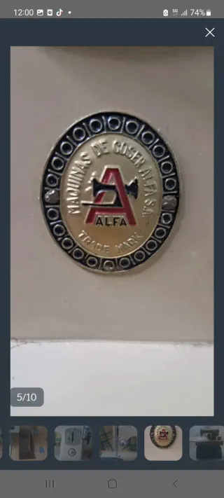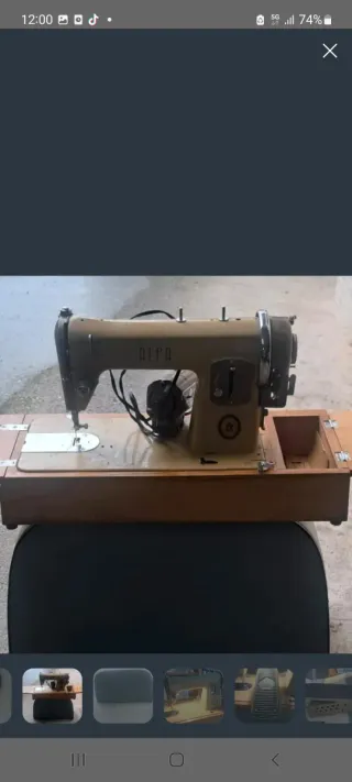Máquina de coser ALFA en color beige, con base de madera. - Diseño clásico. - Incluye motor. - Ideal para coleccionistas o uso decorativo.