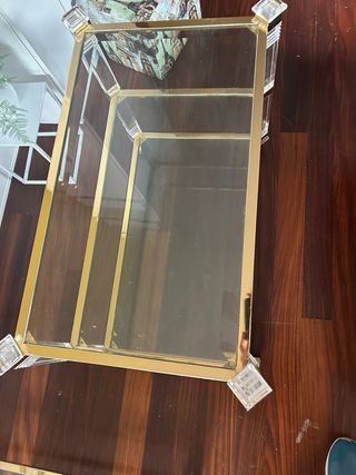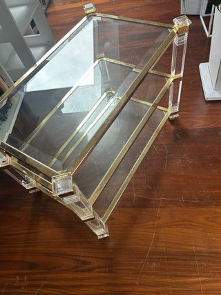 Mesa de centro cristal y metal dorado