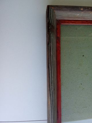 Marco de madera con detalles en rojo y cristal. Medidas: Interior 50x45 cm. Madera maciza. Cristal resistente. Madera robusta y sana. La madera por experiencia permite ser pintada.