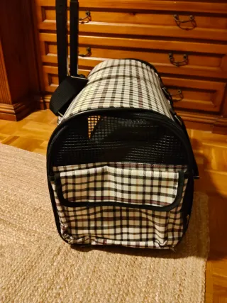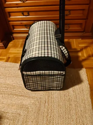 Transportín de diseño a cuadros, ideal para viajar con tu mascota. - Diseño a cuadros en beige y negro. - Malla para ventilación Tiene 48 centímetros de largo y 34 de alto