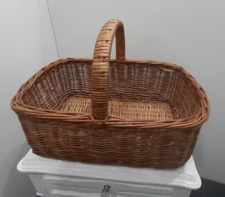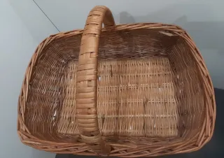 Cesta de mimbre con un asa para facilitar su transporte. Ideal para la compra o decoración en bien estado.