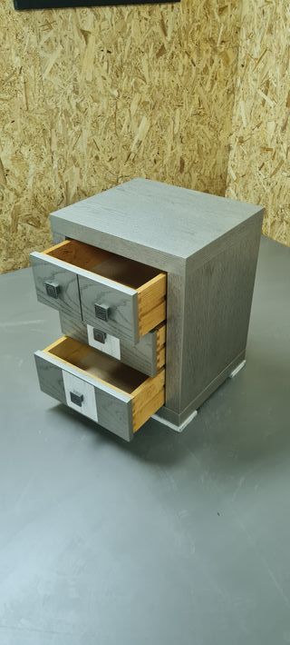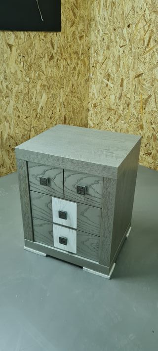 Mesita en chapa natural lacada en plata. Nueva a estrenar. 45 x 56 x 39 cm. No realizo envíos. Se recoge todo en la localidad. Ideal para pisos de alquiler, reformas, restauraciones o sustituciones. En mi perfil puedes ver más muebles, accesorios y auxiliares de todo tipo. Puedo organizar packs. Muebles, mobiliario, decoración, restauración, diseño, alquiler, piso, venta, carpintería, mueble, baño, mampara, cocina, mesa, silla, sofa, armarios, sinfonier, rustico, moderno, vintage, romántico, aparador, entrada, cama, dormito