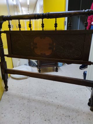 Cama vintage con cabecero de rejilla Descripción: Cama doble vintage de 140 × 190 cm, compuesta por cabecero de rejilla, piecero y largueros. Estilo clásico con acabado craquelado y detalles en dorado. Estructura sólida, con encanto para dormitorio retro o proyecto de restauración. Medidas de colchón: 140 × 190 cm. ( Precio negociable). ✨ Las vendo porque estoy renovando la casa, no puedo conservarlo y quiero que siga teniendo uso. Recogida en Madrid. ⚠️ Solo estará a la venta durante 10 días. Después de ese plazo irá al vertedero, así que es una buena oportunidad si te interesa.