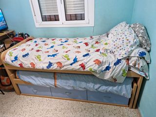 SE VENDE CAMA NIDO – Prácticamente nueva - Estructura: IKEA, resistente y moderna. - Colchones: - Superior: viscoelástica de alta calidad. - Inferior: nuevo, con la etiqueta puesta. Incluye: Ambos colchones y la estructura completa. Cama nido, cama doble, cama infantil, cama juvenil, cama de invitados, Ikea, colchón incluido, colchón viscoelástico, cama azul, cama madera y metal, cama moderna, como nueva, cama completa, cama resistente, cama con colchón, cama plegable, habitación infantil, habitación juvenil, dormitorio invitados, estructura cama, sommier.
