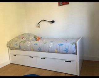 NUEVO PRECIO DERRIBO !!!URGE!! Cama nido con un diseño moderno y funcional. Ideal para optimizar el espacio en cualquier habitación. Es en color Blanco, ideal para contrastar con madera y colores arena. - Medida: Cama de 105x200 (110x210). - Incluye Cajón inferior para segunda cama y ampliar el doble el espacio. cuenta con sus propias patas plegables y le cabe un colchon de hasta 20cm de altura❗️ -Se vende por cambio de dormitorio completo. - Está nuevo y procede de vivienda, sin mascotas y sin tabaco. ❗️OJO. NO incluye colchón y NO SE ENVÍA ❗️