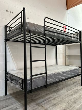 📲Informacion: 680*558*196 litera metalica cama doble 90x190, ideal para dormitorios pequeños, dormitorios infantiles. ✅Litera con colchones: 300€ ✅Litera: 135€ - Medidas: 90x190 cm. - Estructura resistente. - Color negro elegante.