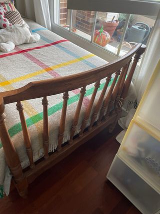 Estructura de cama de madera. Medida total 195 x 98. Para colchón de 180 x 90. Ideal para un dormitorio infantil decoradas con pintura a la tiza. Hay dos. 20 euros unidad. Recogida en la calle Ibiza.