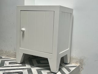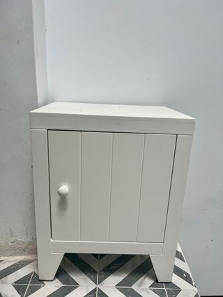 Mesilla de madera maciza lacada en blanco para dormitorio infantil. Muy robusta. Se vende por mudanza.