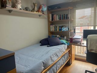 Se vende dormitorio completo juvenil en buen estado, conjunto de muebles ideal para habitación juvenil, funcional y muy cuidado. Incluye: Cama nido con colchón ,somier y cama extra inferior que se eleva a la misma altura, perfecta para invitados o para aprovechar el espacio. Escritorio de madera con cajones amplios. Estanterías de madera con varias baldas. Silla no incluida - Cama nido 90 cmsil con colcha. - Escritorio de madera con cajones. - Estantería de madera con baldas