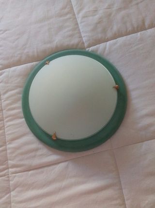 plafón de color verde clarito de metal con cristal blanco prácticamente nuevo medidas de diámetro en las fotos incluye bombilla para dormitorio o cualquier otra estancia de la casa.