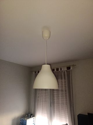 Preciosa lámpara de techo de Ikea. Es de plástico blanco y de gran tamaño, ideal para iluminar cualquier estancia. - Diseño elegante y minimalista. - Perfecta para salones o dormitorios. - Incluye todos los componentes para su instalación. - Regulable en altura.