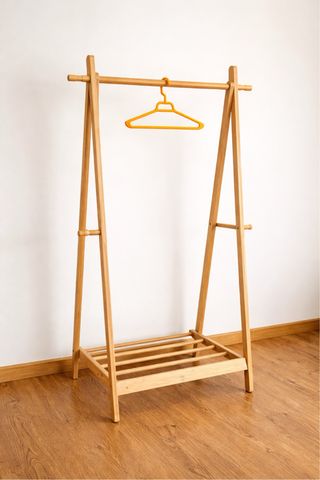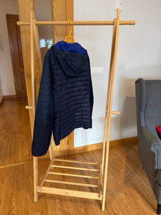Perchero de madera natural en perfecto estado, ideal para dormitorio, recibidor o vestidor. – muy estable y robusto. – Barra superior para colgar prendas y base inferior con listones que sirve como estante. – Diseño simple, práctico y con acabados que resaltan la madera. – Perfecto para abrigos, camisas, camisetas o como complemento decorativo. Medidas aproximadas: 150cm de alto /80 ancho /40 de profundidad en la base). 35 € – entrega en mano o envío por cuenta del comprador.