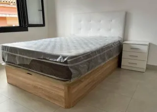 Se vende dormitorio completo, ideal para amueblar tu habitación. - La cama con cabecero y canapé + colchón - Cómoda de madera con tres cajones. - Espejo con marco negro. - Lámpara de techo con diseño moderno. - Mesitas de noche con estante.