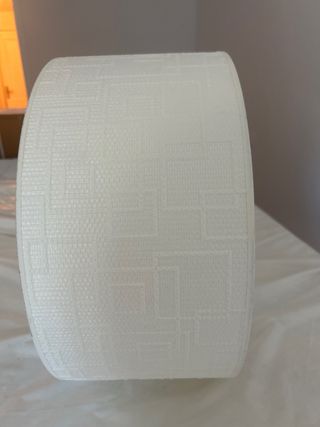 Pantalla de lámpara para dormitorio con un diseño moderno y elegante. - Color beige y blanco. - Tejido texturizado con patrón geométrico. - Estructura interior de metal.