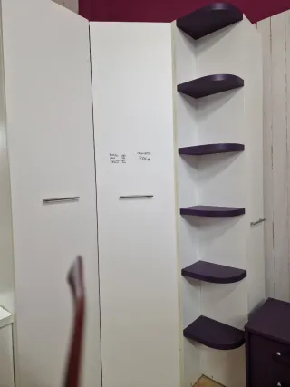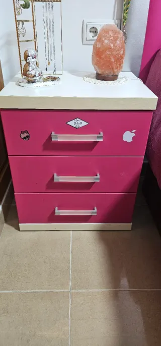 Conjunto de muebles para dormitorio juvenil. - Cama nido. - Mesita de noche morada con ruedas - ropero esquinero Escritorio con cajon calzado Porte incluido Almería capital hasta un 1° cada piso de más 10 €. Montaje aparte 30€