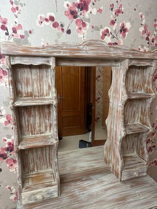 Conjunto de dormitorio de madera con detalles en mármol. - Cabecero de madera con rejilla. - 2 mesitas de noche con tapa de mármol y cajones. - Estructura de cama sin el somier. - Armario de 6 puertas. - Tocador junto con su espejo. Medidas: Armario: 2,40m ancho x 1,90m alto x 62 cm profundidad Mesita de noche: 56cm ancho x 57,5 cm alto x 32 cm profundidad Tocador: 110 cm x 72 cm x 44 cm prof Cabecero: para cama de 150cm x 190 cm Regalo cama individual (somier+colchón) Importante: no se hace envío, se desmonta y se recoge en el domicilio.