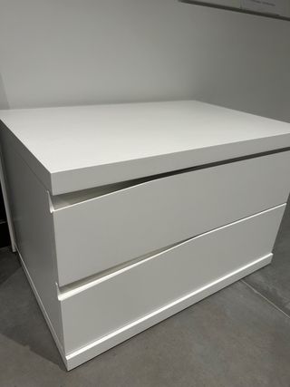 Preciosa mesita de noche de Ikea, modelo Malm. Está en muy buen estado y lista para usar. - Dos cajones espaciosos. - Diseño sencillo y elegante. - Perfecta para dormitorio.