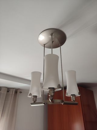 Preciosa lámpara de techo de estilo vintage. Ideal para dar un toque elegante a cualquier habitación. Se vende por cambiar a ventilador. Precio negociable