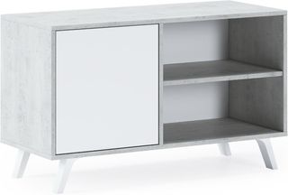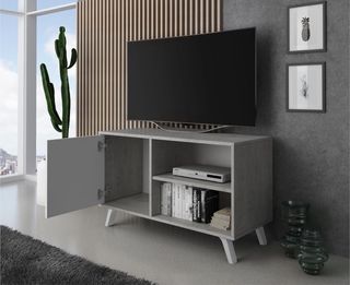 Mueble de Salón con un diseño moderno y funcional. - Medidas: 95cm (ancho) x 39,6cm (profundidad) x 56,9cm (alto). - Acabado en gris y blanco.