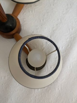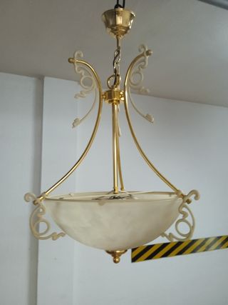 Es una lampara en buen estado y bien cuidado con dos lamparitas de las mesitas de noche tambien en buen estado
