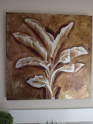 Precioso cuadro decorativo con diseño de hojas en tonos marrones y blancos. Es una pieza única que añadirá un toque elegante a cualquier espacio. - Pintura acrílica sobre lienzo. - Colores: marrón y blanco. - Estilo elegante y sofisticado. - Perfecto para decorar salones, dormitorios u oficinas.