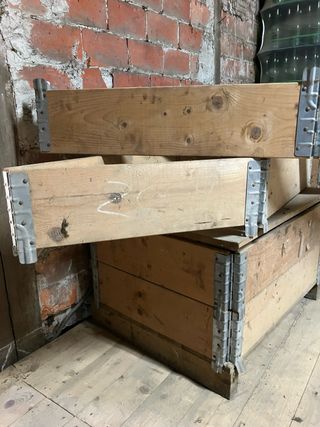 Caja de madera de diseño modular, ideal para almacenamiento o decoración. Cada modulo tiene una altura de 19 cm - Construcción robusta en madera. - Uniones reforzadas con piezas metálicas.