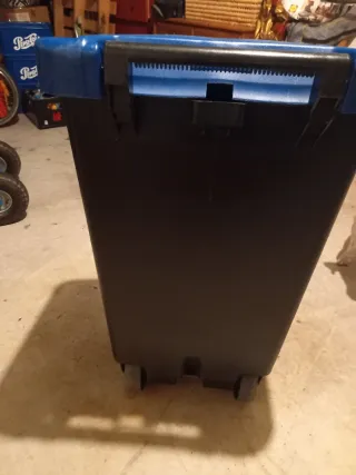 Conjunto de dos cubos de basura, uno negro y otro gris, ambos fabricados en plástico. - Cubo de basura negro con tapa basculante. - Cubo de basura gris con pedal. Los dos por 8€, separados cada uno 5€
