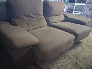 Sofá de dos plazas con mecanismo deslizante, muy cómodo y de diseño moderno. - Tapicería de tela. - Color marrón.