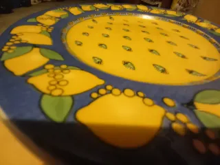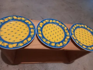 Set de tres platos de cerámica con un diseño provenzal. Motivos de limones y hojas.