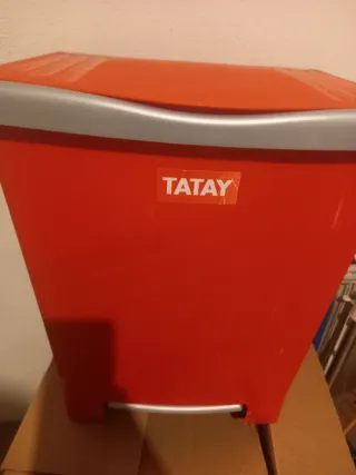 Cubo de basura de la marca TATAY, con un diseño moderno y práctico. - Color rojo - Fabricado en plástico resistente.