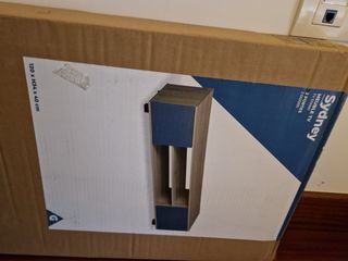 Mueble de TV de la marca Sydney con un diseño moderno y funcional. Sus dimensiones son 120 cm de ancho, 34 cm de alto y 40 cm de profundidad. - Dos puertas para almacenamiento. - Acabado en madera y azul.