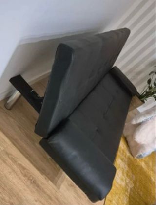 Sofá cama moderno y funcional, perfecto para cualquier espacio. - Diseño capitoné. - Brazos abatibles. - Base con compartimento de almacenamiento.