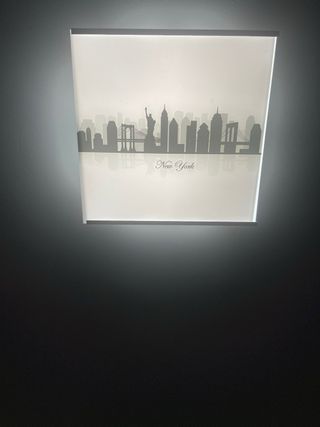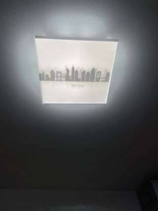 Lámpara de techo con diseño de skyline de Nueva York. Aporta un toque moderno y urbano a cualquier estancia. - Diseño con silueta de edificios emblemáticos. - Acabado en tonos grises y blancos.