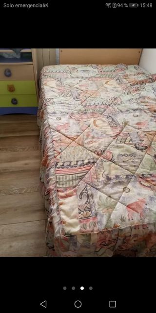 2 edredones ligero de 210 x 90 más faldón de tela de 45 cm. 20 € cada uno. Puede ir con dos cojines a juego por 5 € más cada uno.