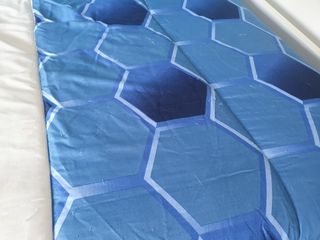 Edredón con el escudo y el nombre del Real Madrid. - Diseño con hexágonos en tonos azules. - Usado, pero se le puede aprovechar perfectamente - Amoroso, calentito y fácil de lavar. - En la foto se puede ver unos enganchones, en la zona de los pies. Yo lo solucioné con una mantita a modo de adorno. - Es reversible, aunque el revés está desgastado. Medidas 170 x 230 Las otras medidas, son las del paquete 55x18x55