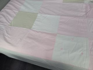 Edredón con diseño patchwork en tonos rosas y beige, ideal para una habitación infantil. - Diseño de cuadrados. - Acabado suave al tacto. Medidas 190/90