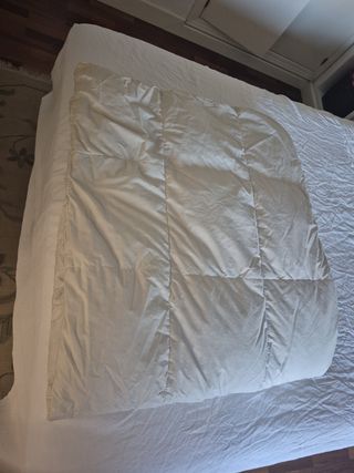 Edredón de plumón de muy buena calidad. Pesa muy poc9 y abriga muchísimo. Medidas 170x190.