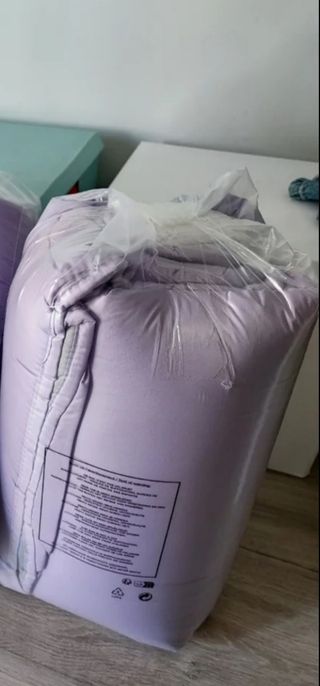 Se vende edredón sin estrenar para cama de 90, no lo he sacado del paquete. Lo vendo porque no es color adecuado y se me ha pasado el plazo de devolución. 100% poliéster. Por una cara es malva claro y por otra gris. Tengo dos edredones disponibles para vender juntos o separados. Al ser para cama de 90, solo incluye una funda de almohada. El color es malva claro como en la primera foto.