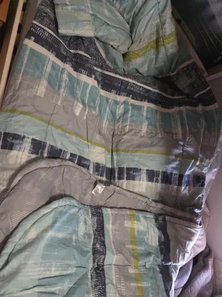 Edredon cama 150x200cm. Marca Antilo (en la tienda valen más de 100€). Colores lilas y grises. Lleva dos fundas de cojín a juego. Muy bonito y de muy buena calidad. Poquísimo uso, está nuevo. Lo cambio porque no me pega con la decoracion.