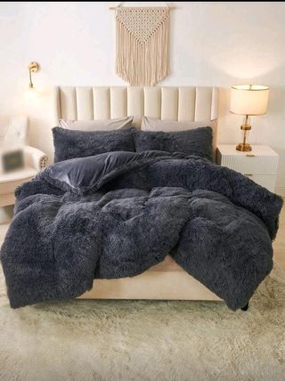 Juego de cama de tacto suave y cálido, ideal para mantenerte abrigado. - Color gris oscuro. - Material: poliéster. - Incluye funda nórdica y fundas de almohada.