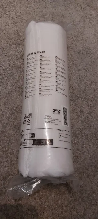 Edredón/relleno Ikea, cálido de matrimonio. Es finito SIN ESTRENAR Tejido Exterior 100% poliester Relleno: fibras sintéticas No conservo el embalaje original. Pongo foto para que se vean más claramente las características.
