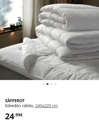 Edredón extra cálido de Ikea, modelo RÖDTOPPA Edredón Ikea 240x220 Extra cálido y fácil de cuidar Nivel térmico 4 De algodón suave con mezcla de lyocell Se puede lavar a máquina a 60C Precio tienda 100€
