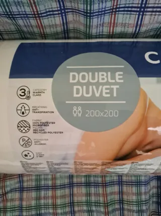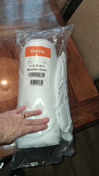 Edredon nuevo y plastificado. preckntados ilgero de la prestigiosa marca EMMA . Hecho en microfibra 100% poliester. Gramaje y peso esta en la foto del artículo. Me vino con el pack entero con colchón pero ya teníamos uno por eso lo vendo. Esta precintado por eso recomiendo cualquier duda consultar la web de EMMA. Su valor en la web es de 58 euros. No acepto devoluciones. Gracias por la comprensión.