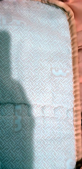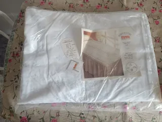 Edredón Reig Martí con las esquinas cerradas para enmarcar la cama. Para cama de 1,35 con volante de 50 cm. 2 cuadrantes de 42 x 55 cm aproximadamente, SIN relleno Puesto solo una vez y lavado en tintorería. Costó 137 euros. Precio cerrado.