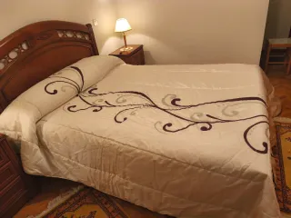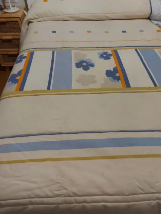 Edredón para cama de matrimonio es para una cama de 150 cm, en buen estado hay que llevarlo a la tintorería a limpiar más que nada por higiene yo llevo tiempo que no lo uso y por eso no lo he llevado lo tengo guardado, por eso lo he puesto a ese precio. De la marca Reig Marti me costó caro. No negociable. No envío
