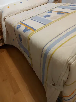 Se venden dos edredones uno color beige Reig Marti nuevo usado de adorno y otro multicolor con más uso pero buen estado no son muy gordos los dos x 30€