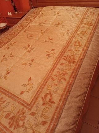 Preciosa colcha edredón de 135cm, ideal para cama individual. Es de color beige y naranja, con un diseño floral muy elegante. - Perfecto estado. - Diseño con estampado floral. - Tejido suave y agradable al tacto. Es de Reig Marti